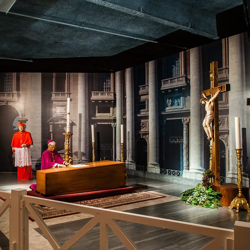 In 2005, the Museum began its collaboration with the Vatican for what has become its hallmark exhibit, Celebrating the Lives and Deaths of the Popes. A collection of authentic items were acquired by the Museum for display, including the original uniforms worn by The Swiss Guard (responsible for the Pope's personal security) and vestments from Gammarelli’s, the tailor shop in Rome, which has clothed the last seven Popes.