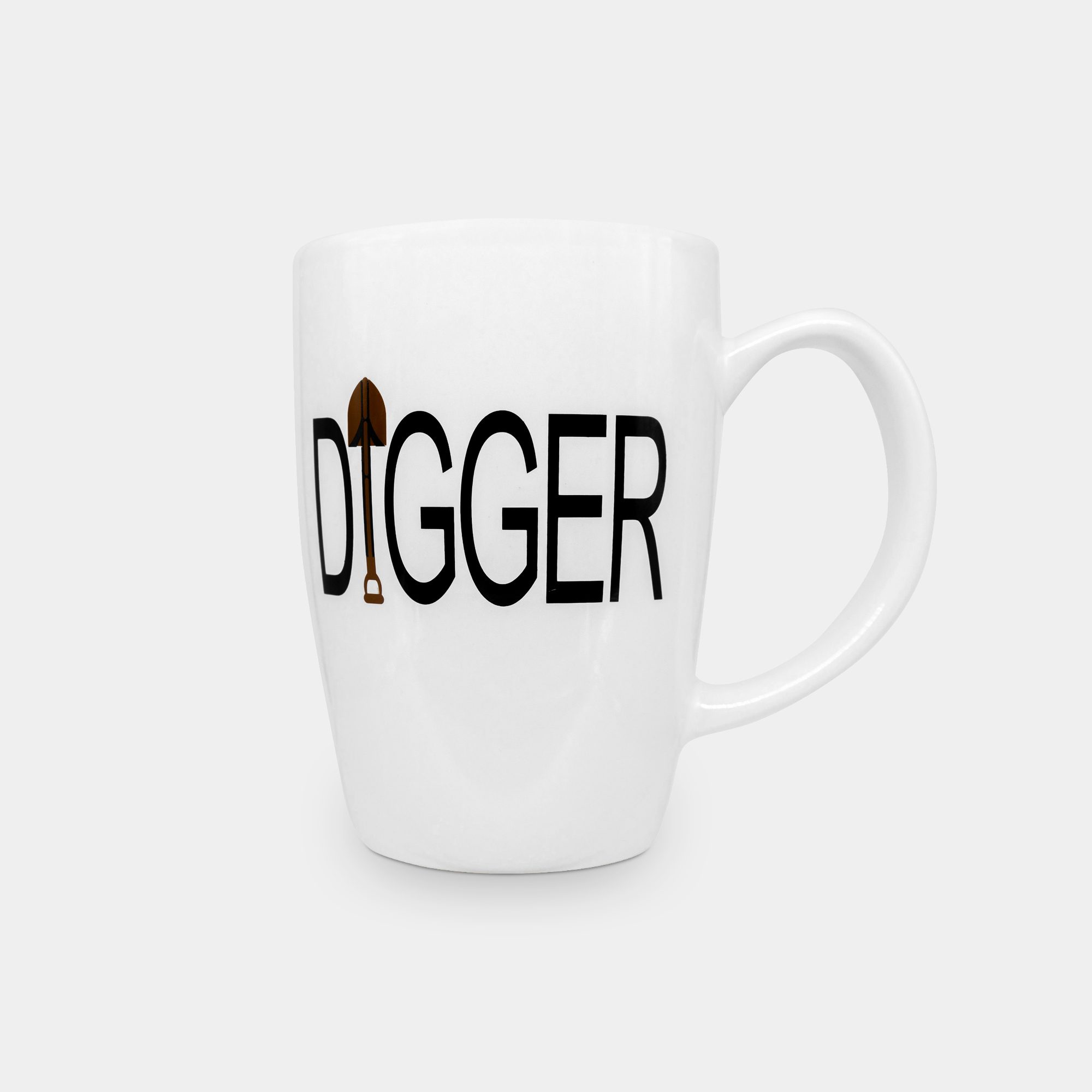 Ceramic coffee mug featuring grave digger insignia