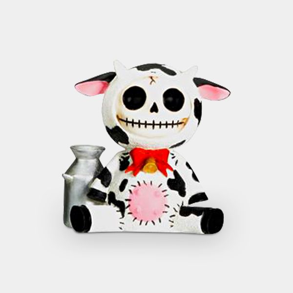 Moo-Moo is a resin figurine as a super cute dairy cow with a tin milk can.