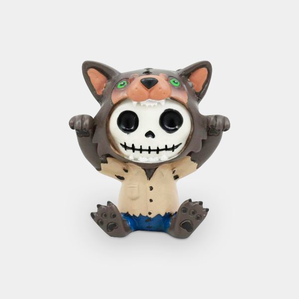 Wolfie is a hand painted resin figurine featuring the signature skeleton Furrybones dressed up a Werewolf.
