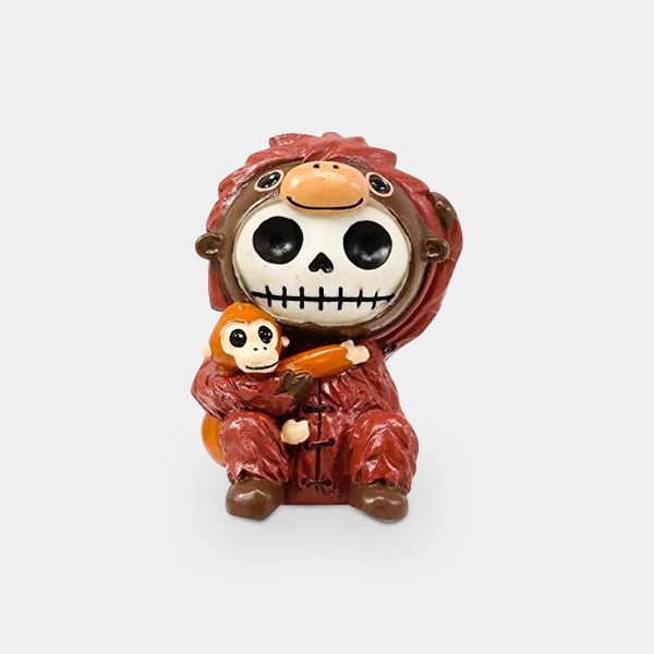 Utan is a hand painted resin figurine featuring the signature skeleton Furrybones dressed up as an Orangutan.