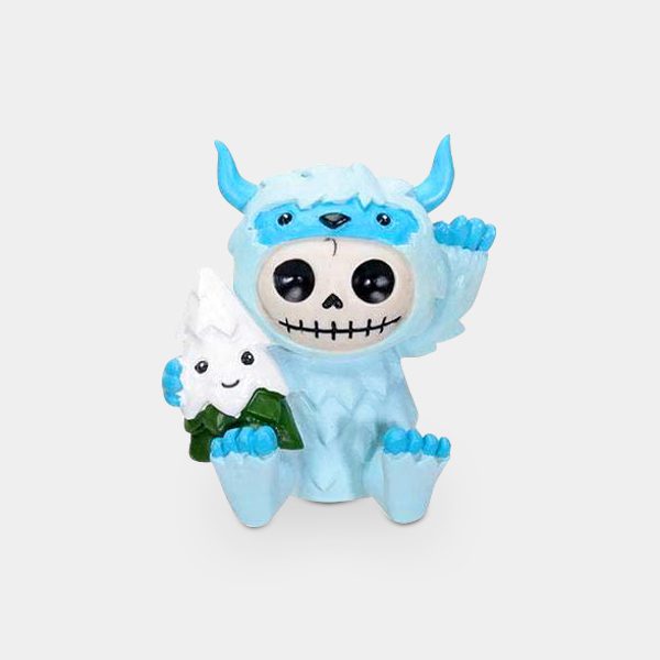 Yeti is a hand painted resin figurine featuring the signature skeleton Furrybones dressed up as an abominal snowman.