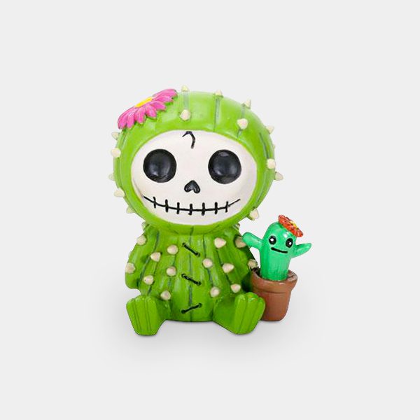 Prickle is a resin figurine as a cactus with a pink flower and a tiny cactus friend