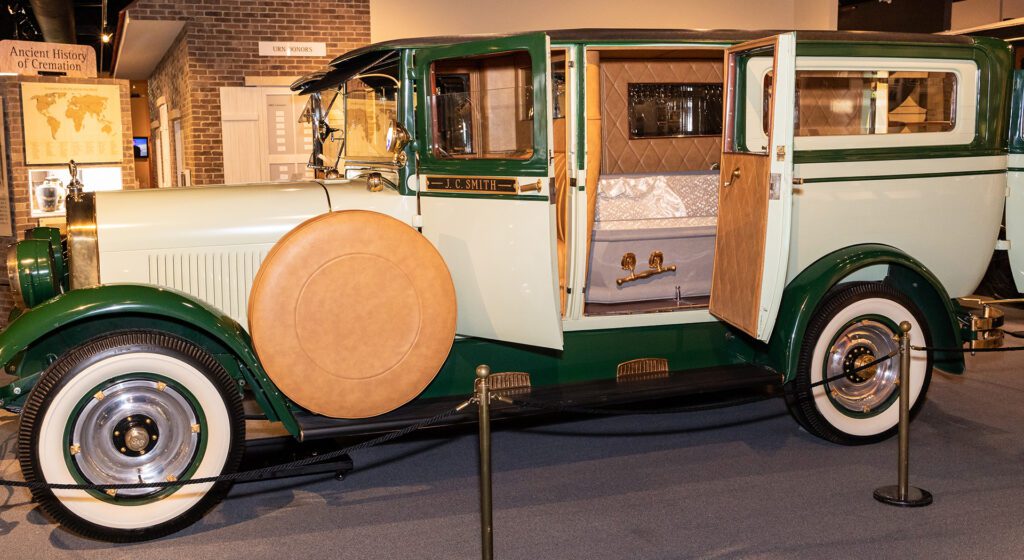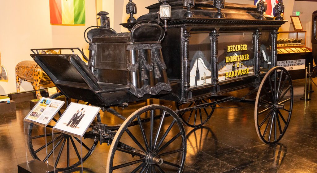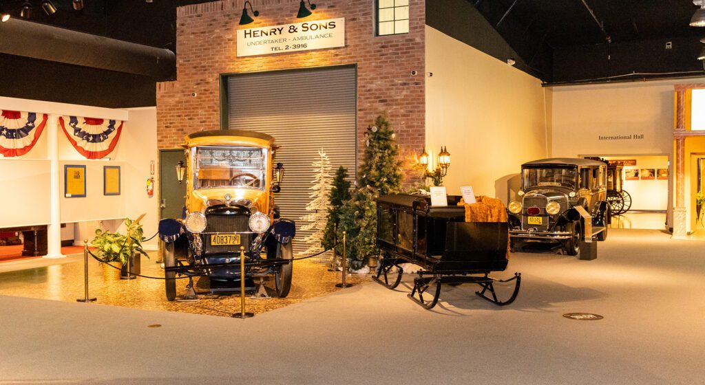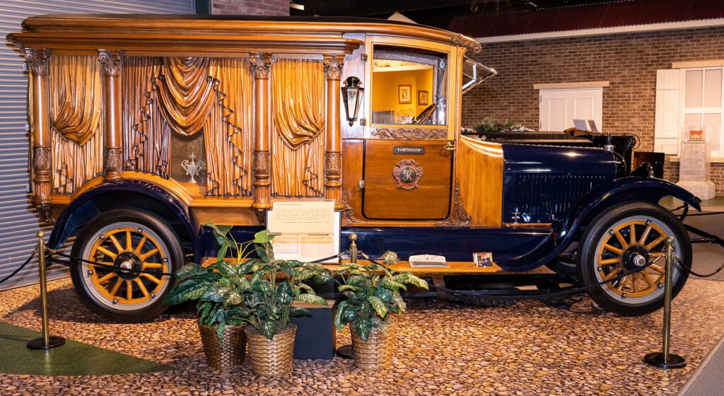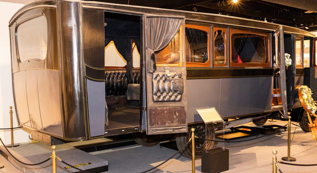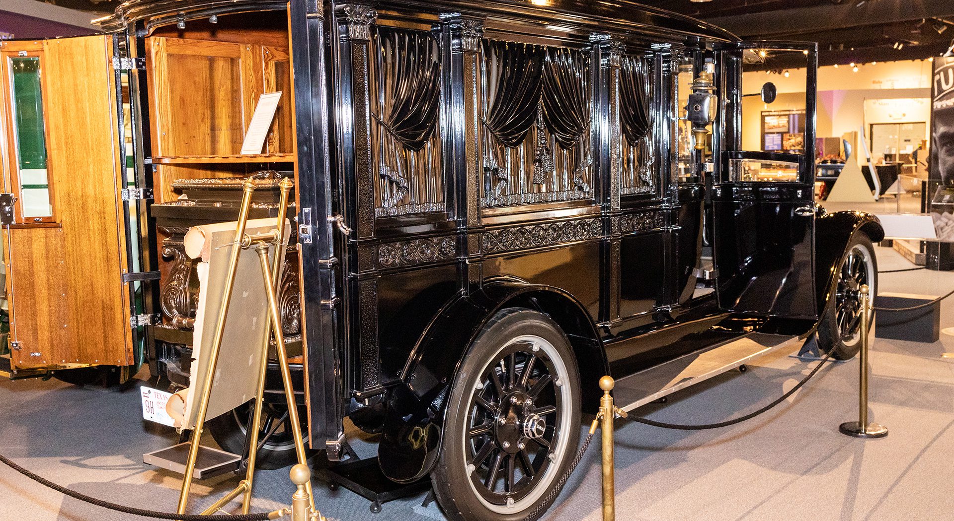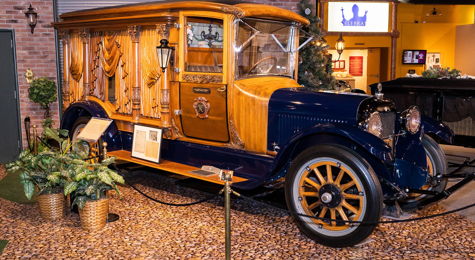 The Museum’s collection of rare funeral service vehicles traces the evolution of funerary customs, from the elegant horse-drawn funeral carriages of the 19th century to the actual hearses used in