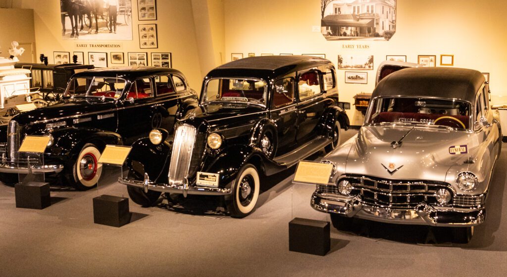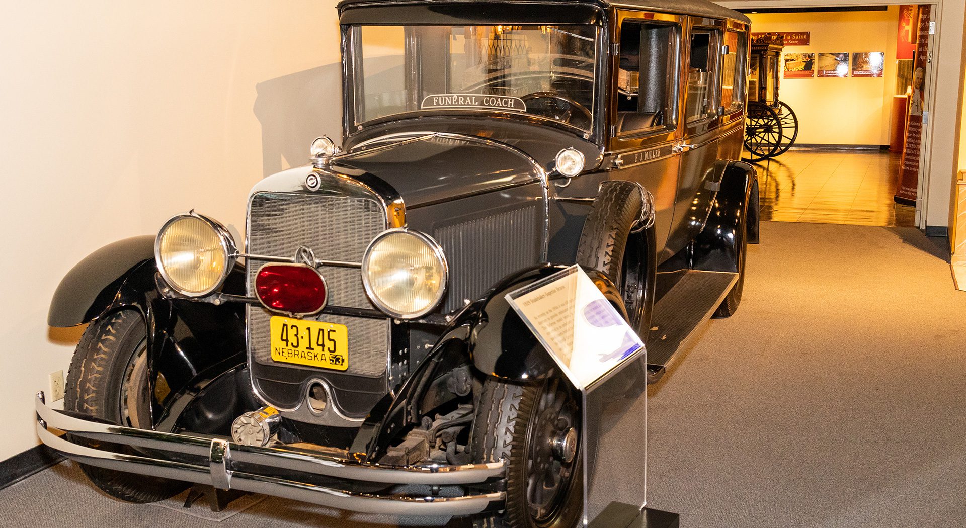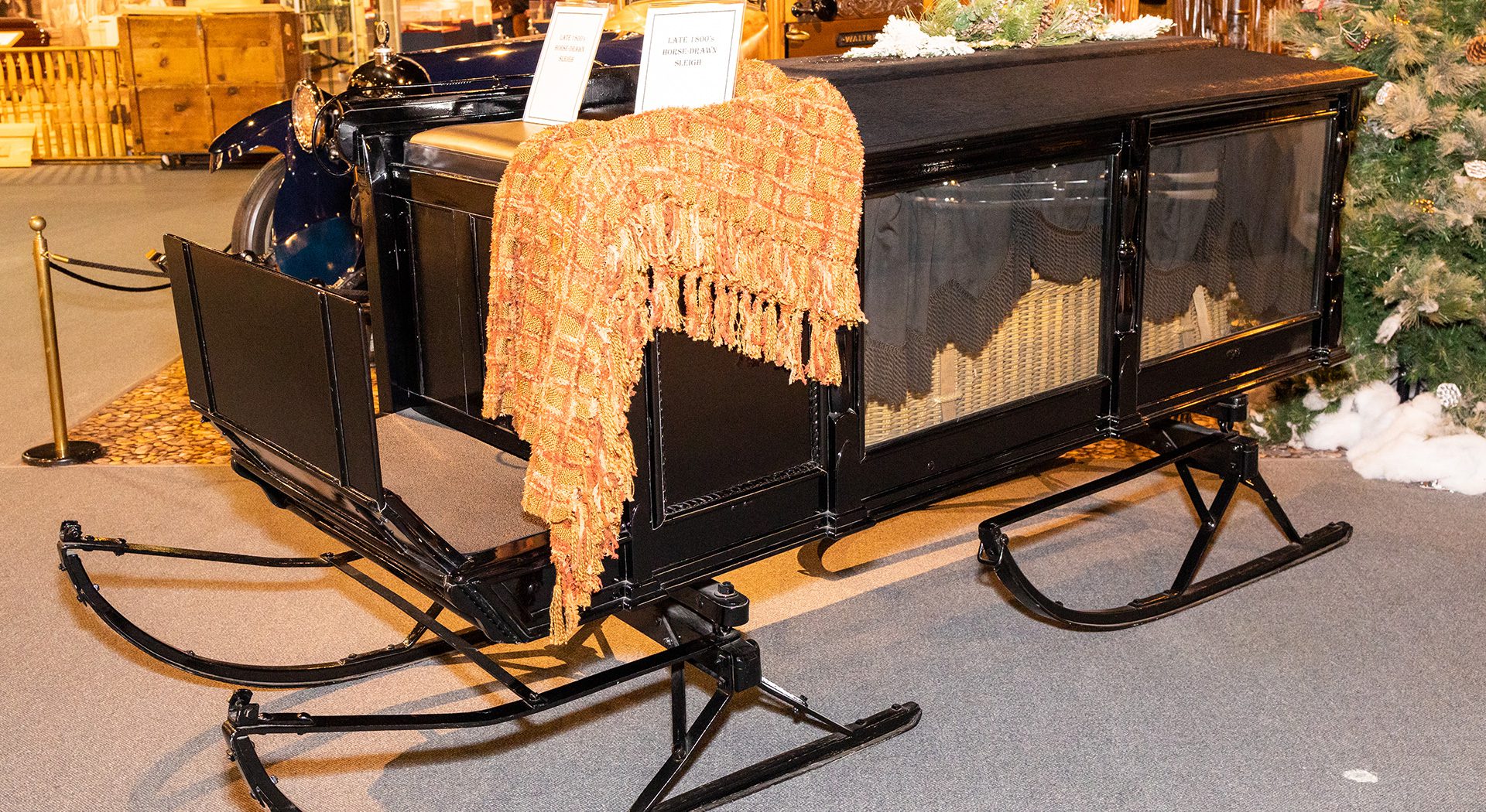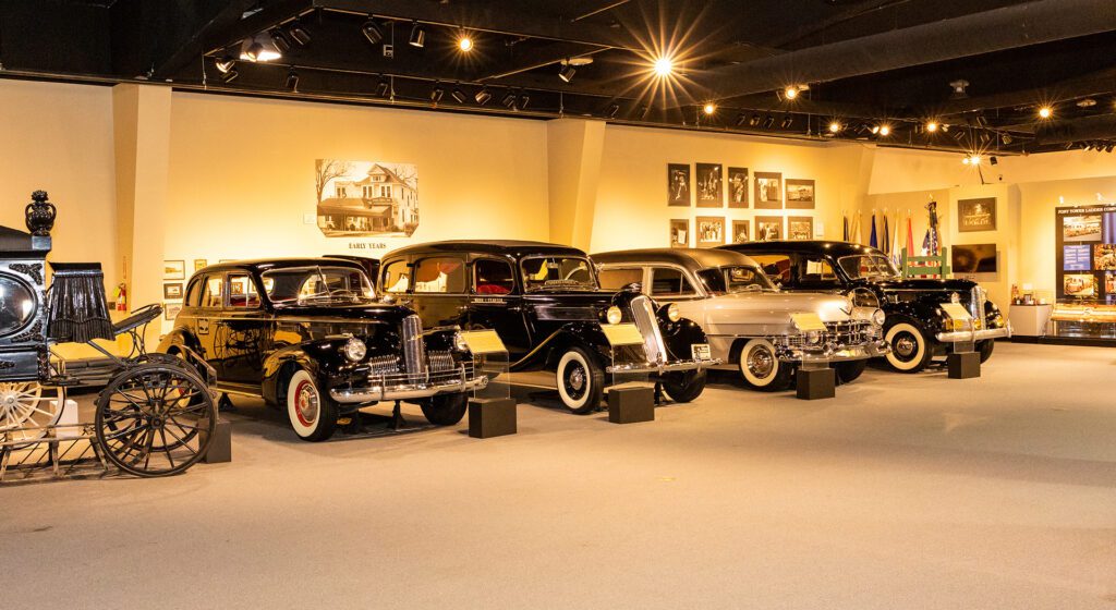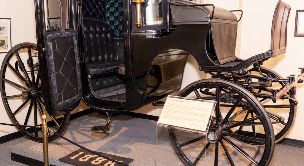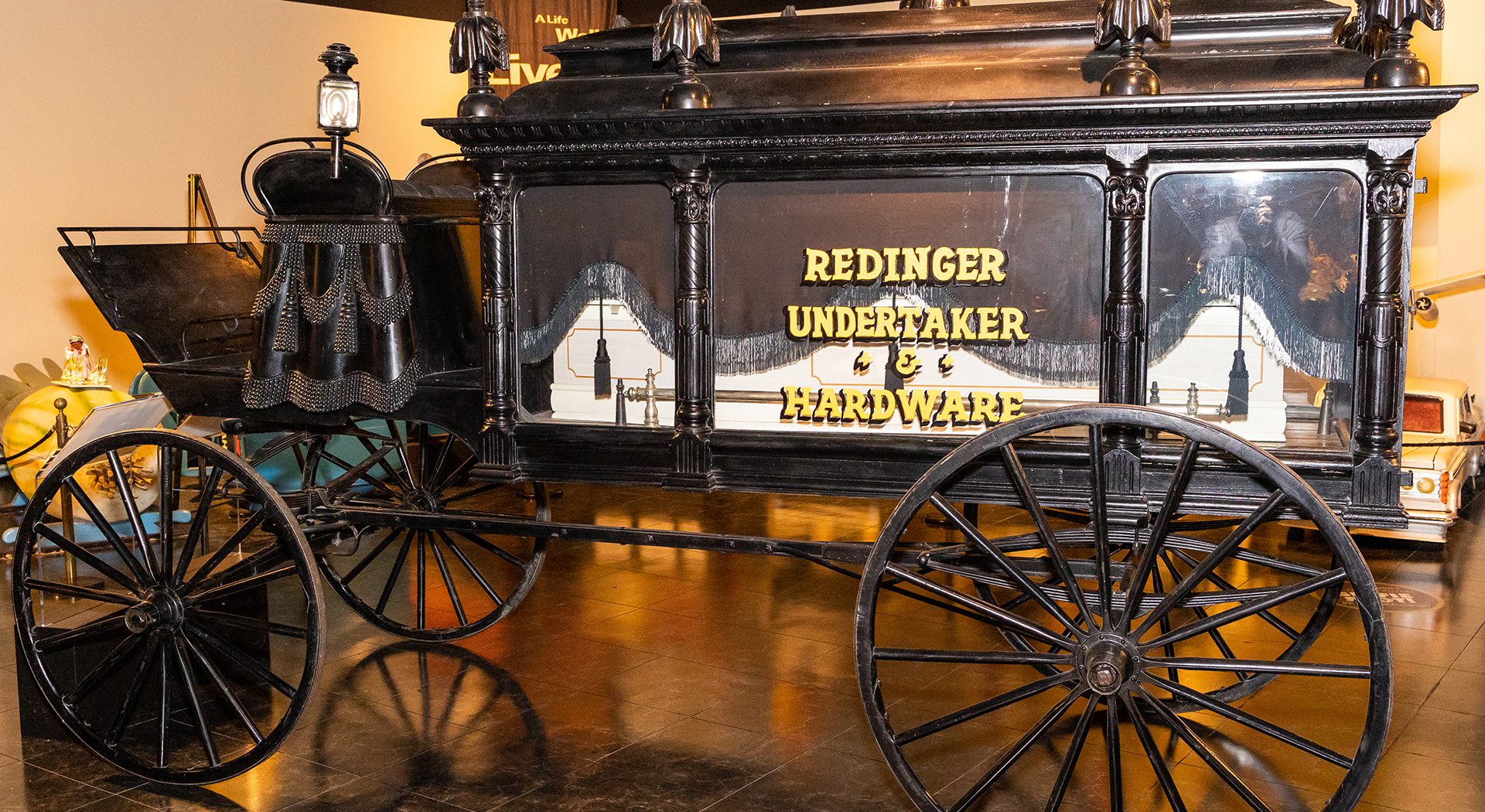 The Museum’s collection of rare funeral service vehicles traces the evolution of funerary customs, from the elegant horse-drawn funeral carriages of the 19th century to the actual hearses used in