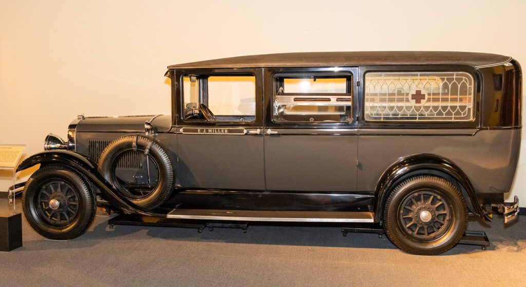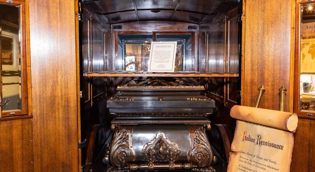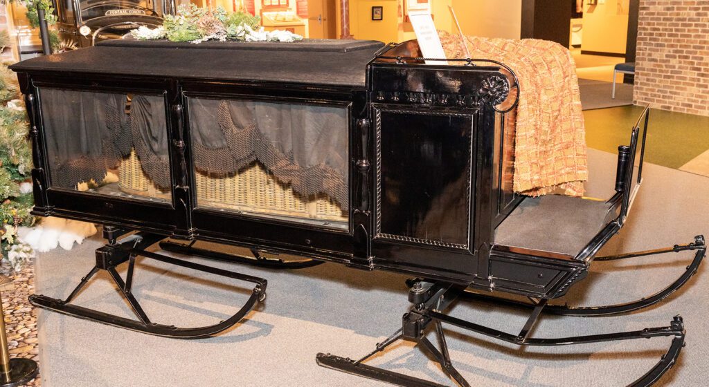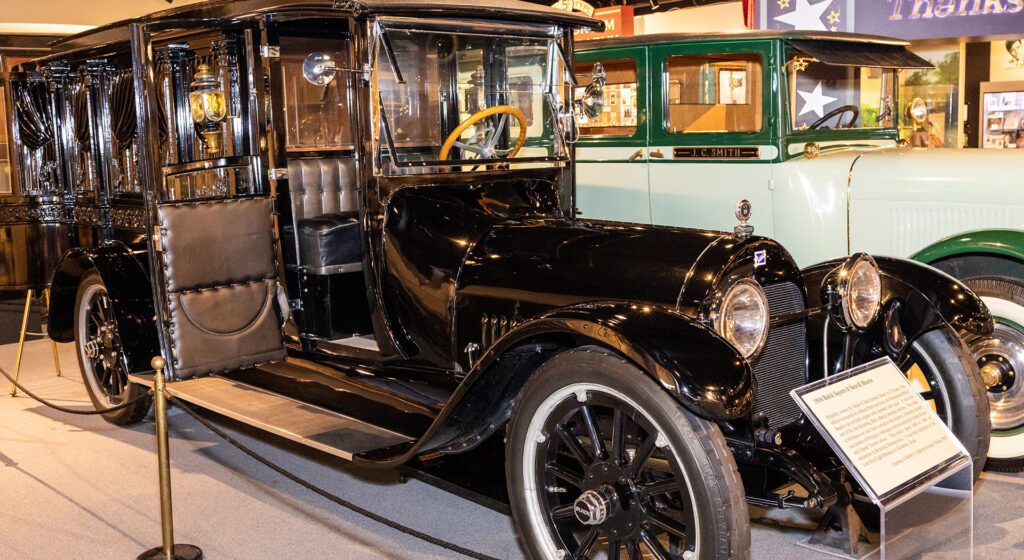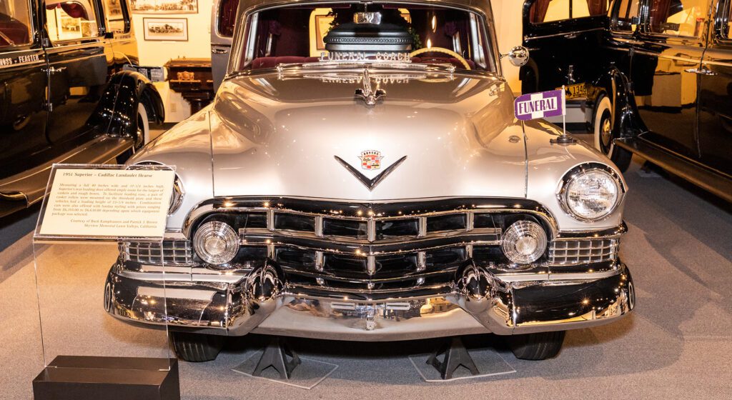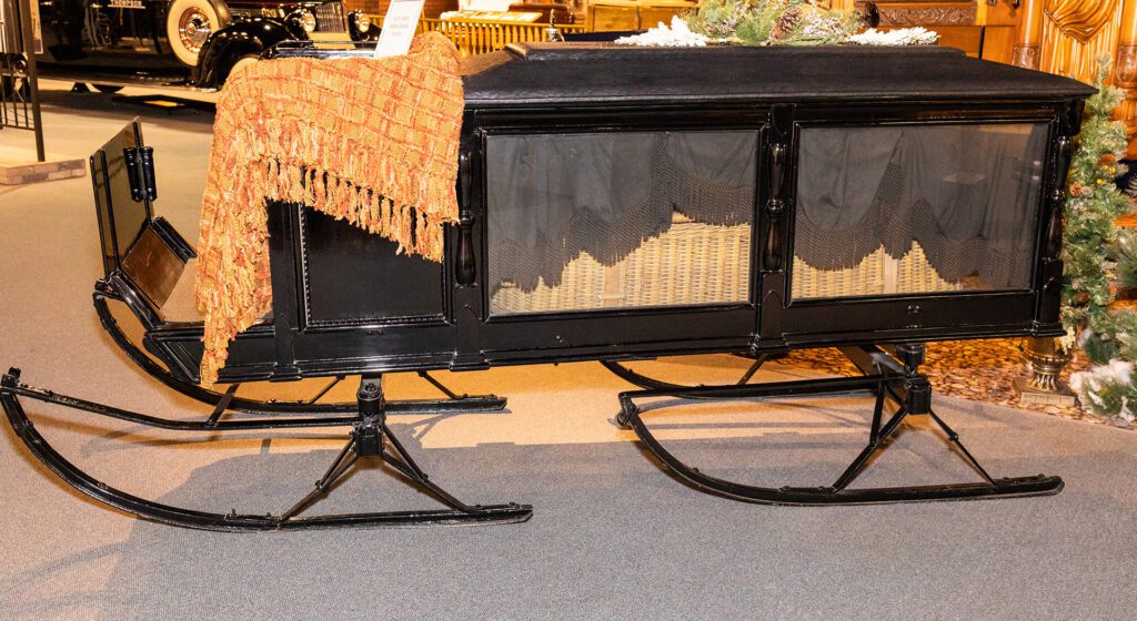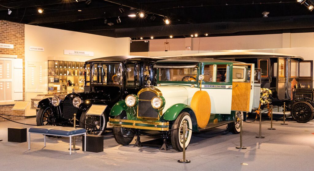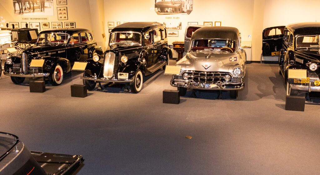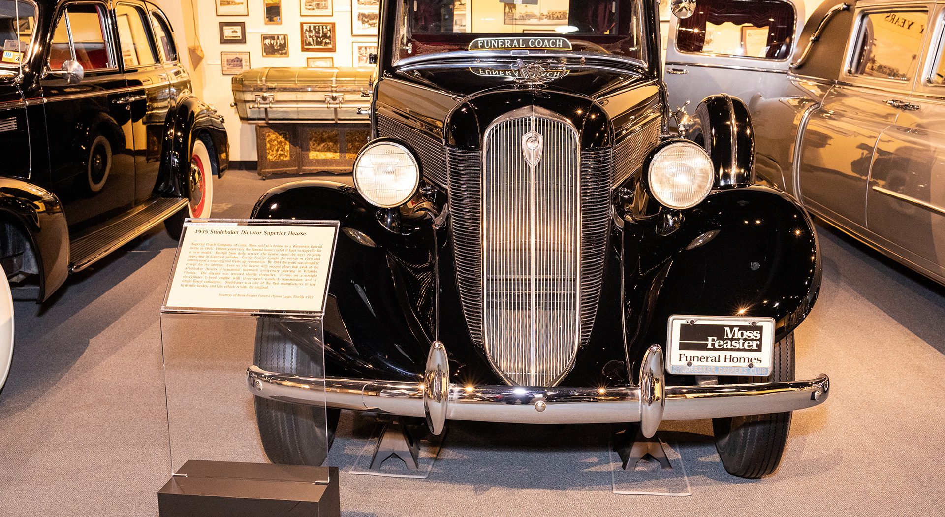 The Museum’s collection of rare funeral service vehicles traces the evolution of funerary customs, from the elegant horse-drawn funeral carriages of the 19th century to the actual hearses used in