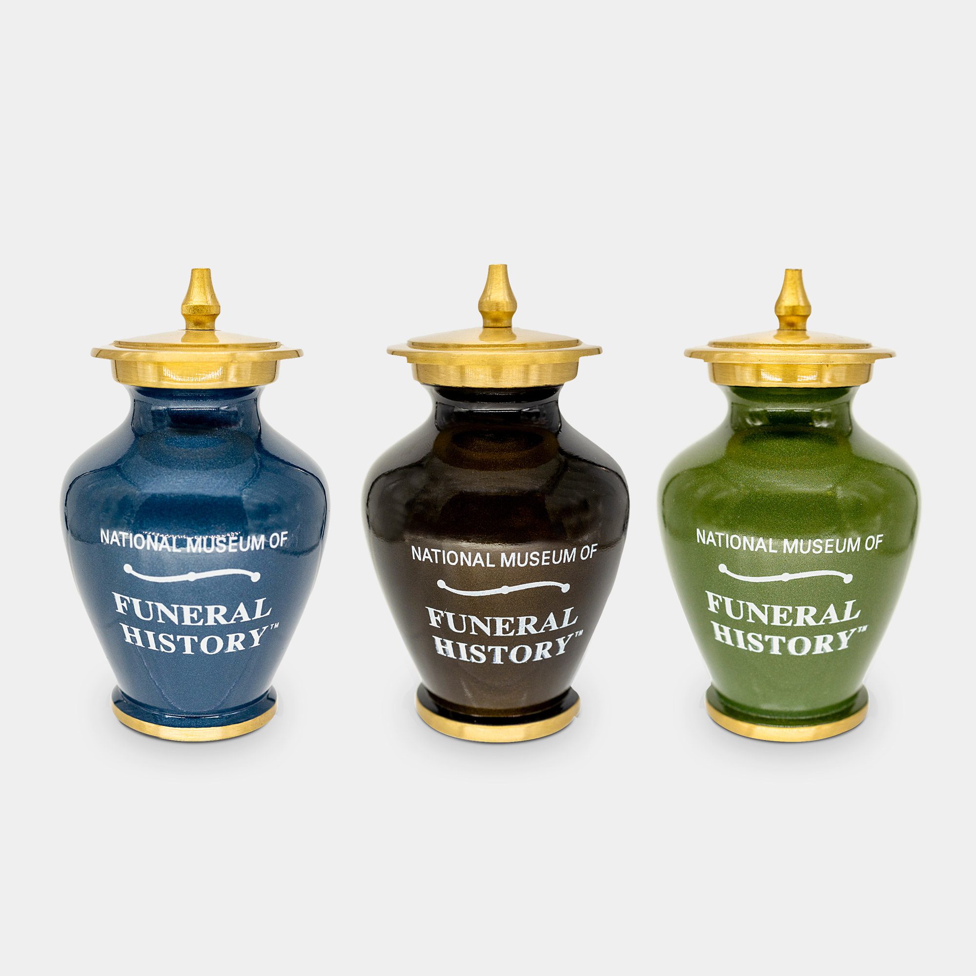 Donor will receive the souvenir urn in choice of blue, brown, green or the McKenzie classic.