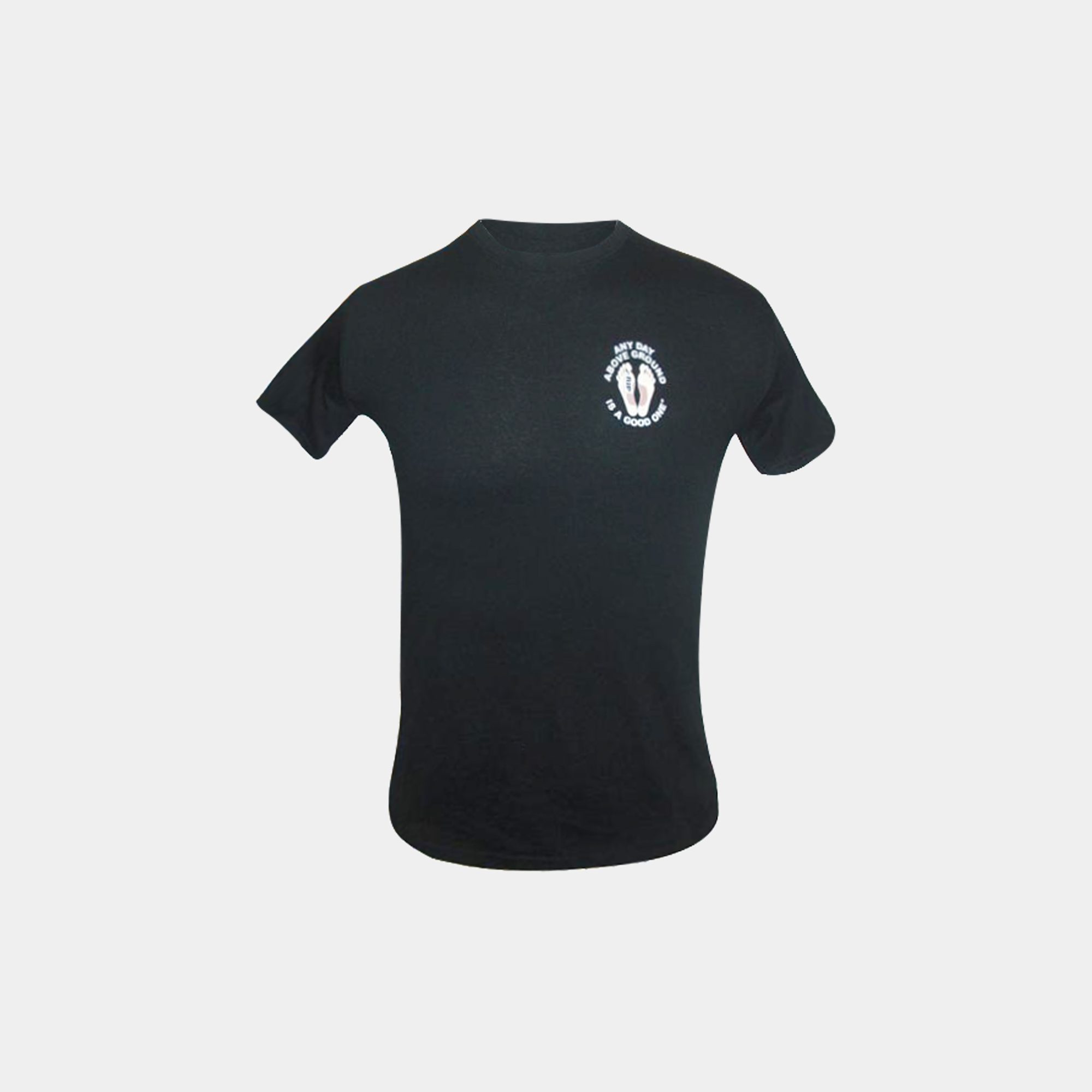 Features toe tag insignia with “Any day above ground is a good one” slogan