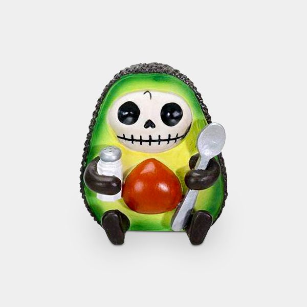 Hass is a resin figurine dressed as an Avocado along with a spoon and saltshaker.