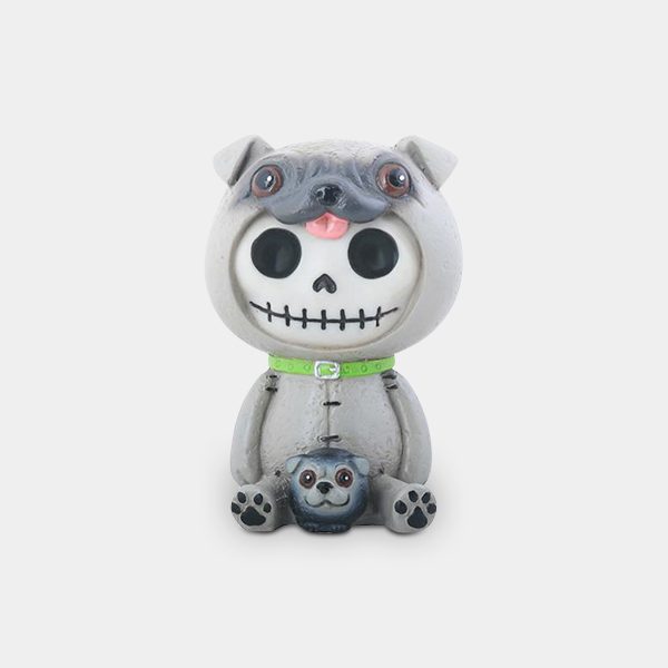 Pugsly is a resin figurine.