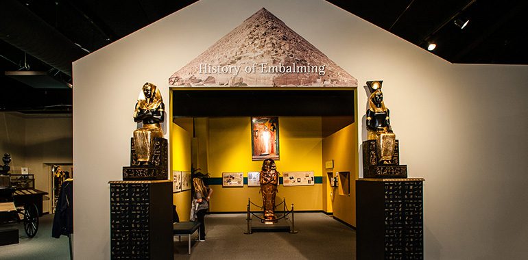 bserve how—and ponder why—the Ancient Egyptians developed embalming rituals more than 5000 years ago and learn about the utter necessity of preserving bodies during the Civil War. This exhibit tracks the methods of preserving human remains through the centuries.