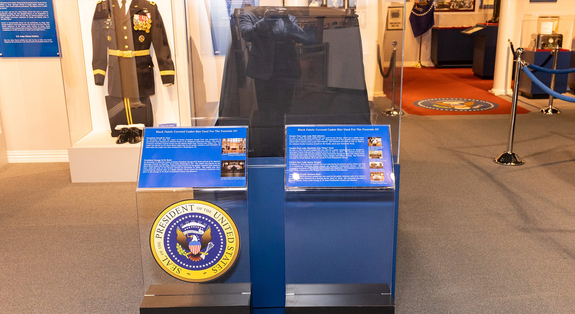 onnect with key moments in U.S. history by exploring the Museum’s extensive display of artifacts and original items used in the state funerals and burials of some of America’s great presidents. In Presidential Funerals, see the authentic bill from President George Washington’s funeral, the original eternal flame from President John F. Kennedy’s gravesite in Arlington National Cemetery, the hearse used to carry the bodies of President Ronald Reagan and President Gerald R. Ford in California and the ammo case from the 21-cannon salutes rendered during the ascend and descend of Air Force One while it carried the body of President Gerald R. Ford in 2006.
